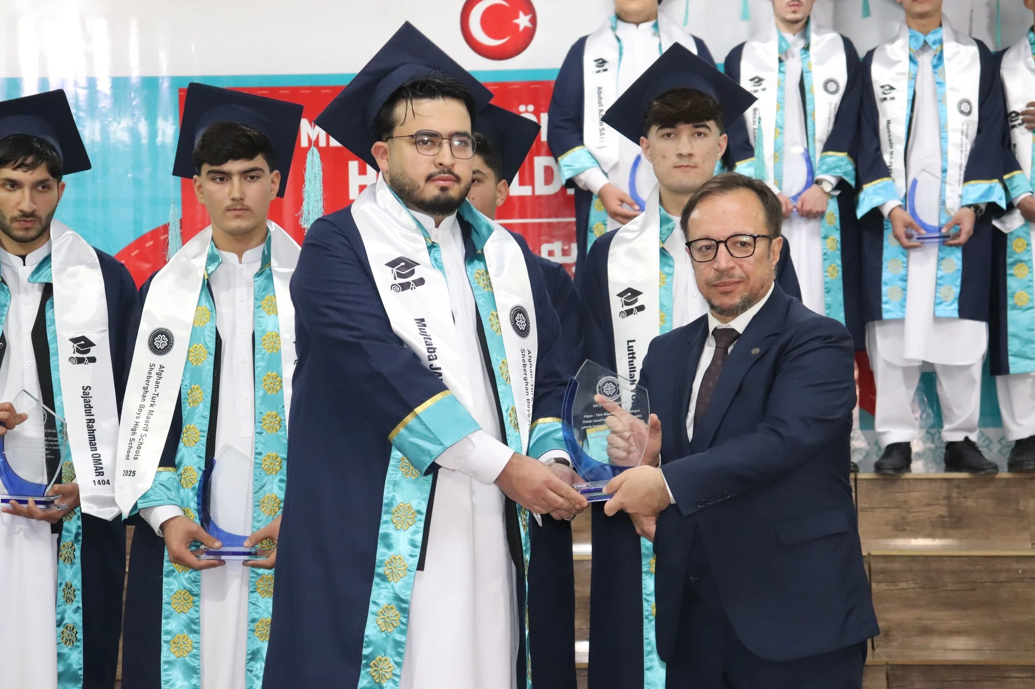 محفل باشکوه فراغت دانش‌آموزان پرتلاش مکاتب معارف افغان-ترک لیسه پسرانه شبرغان در فضای پرشور و انگیزه برگزار شد.